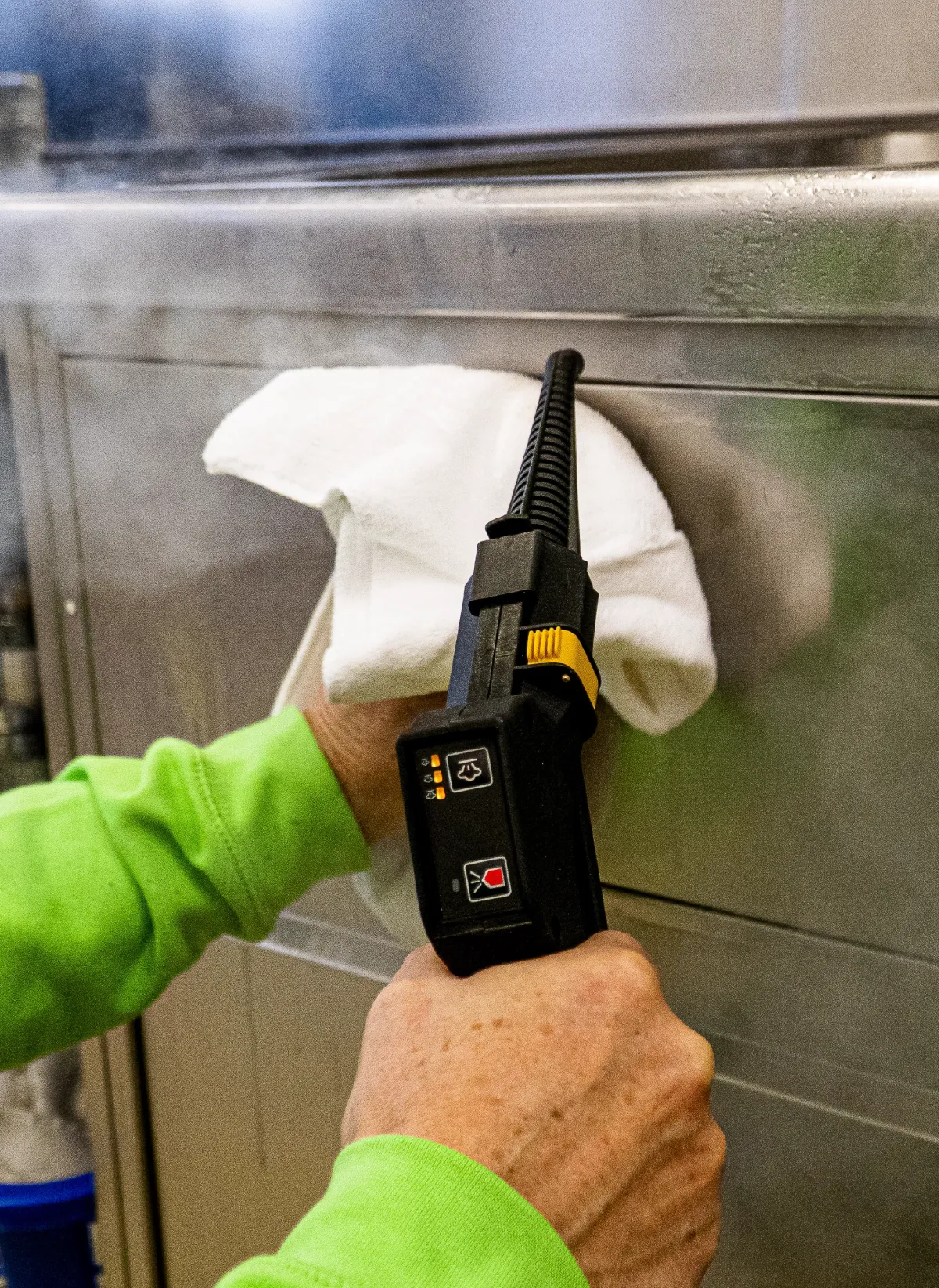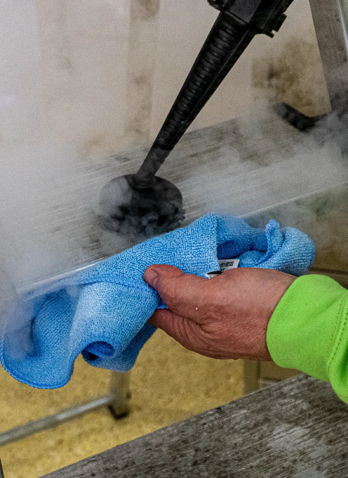 Residue-free cleaned surfaces are hygienic surfaces, as new dirt is harder to adhere to and germs no longer have a breeding ground. Cleaning with micro dry steam can reduce germs by at least 99.99%.